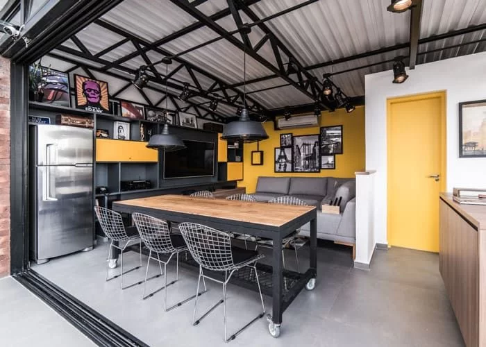 O estilo industrial, inspirado nos lofts de Nova York, mistura elementos brutos como concreto, metal e madeira, criando espaços com uma vibe urbana e arrojada, perfeito para quem adora uma estética mais despojada.